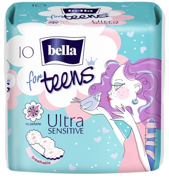 A Bella for Teens női intimhigiénés termékeket fiatalos megjelenésükkel tinilányok számára ajánljuk, akik épp csak beléptek a nővé érés életszakaszába. Az intimbetétek kivitele légiesen vékony, mindössze 2 mm, a fehérneműhöz szárnyakkal rögzíthetők. A viselési komfort érdekében a termék légáteresztő tulajdonsággal rendelkezik, a fehérnemű felületének és széleinek tisztaságáért pedig a hatékony nedvességelvezetés felel: így biztosít megbízható menstruációs védelmet