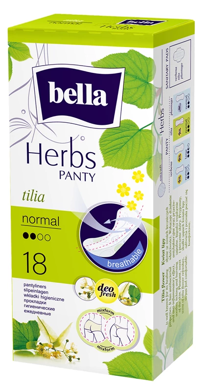 A rendhagyó, mégis természetesebb megoldást keresőknek tökéletes választás a Bella Herbs tisztasági betét, mely gyógyfüvek kivonatával gazdagítva gondoskodik a hüvelyi folyás okozta kellemetlenségek megelőzéséről. A test formáját kiválóan követi, így kényelmes és biztonságos megoldás a mindennapokra akár tanga bugyihoz is. A betét légáteresztő réteggel rendelkezik, mellyel az intim bőrfelületek egész nap lélegezni tudnak, ennek ellenére Odour Stop rendszerének köszönhetően a kellemetlen szagok nem szivárognak ki. Különleges illata mellett a hársfavirág kivonatnak több funkciója is van. Antibakteriális és gyulladásgátló hatásával gondoskodik viselőjének egész napos komfortérzetéről. A csomagolás 18 db tisztasági betétet tartalmaz. A termék használata enyhe vagy normális hüvelyi folyás mellett javasolt.