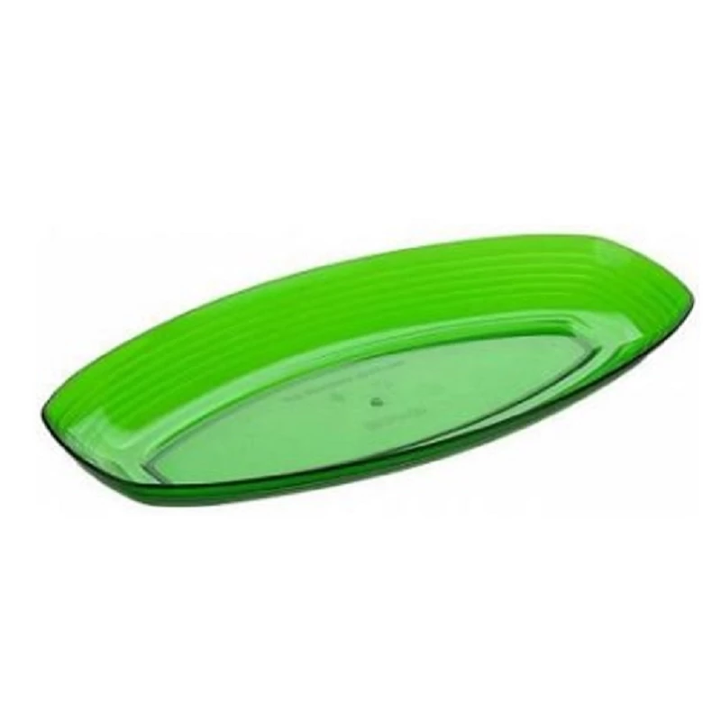 Ovális műanyag tál könnyű, tartós, könnyen tisztítható. Kivitelezése elegáns, átlátszó.