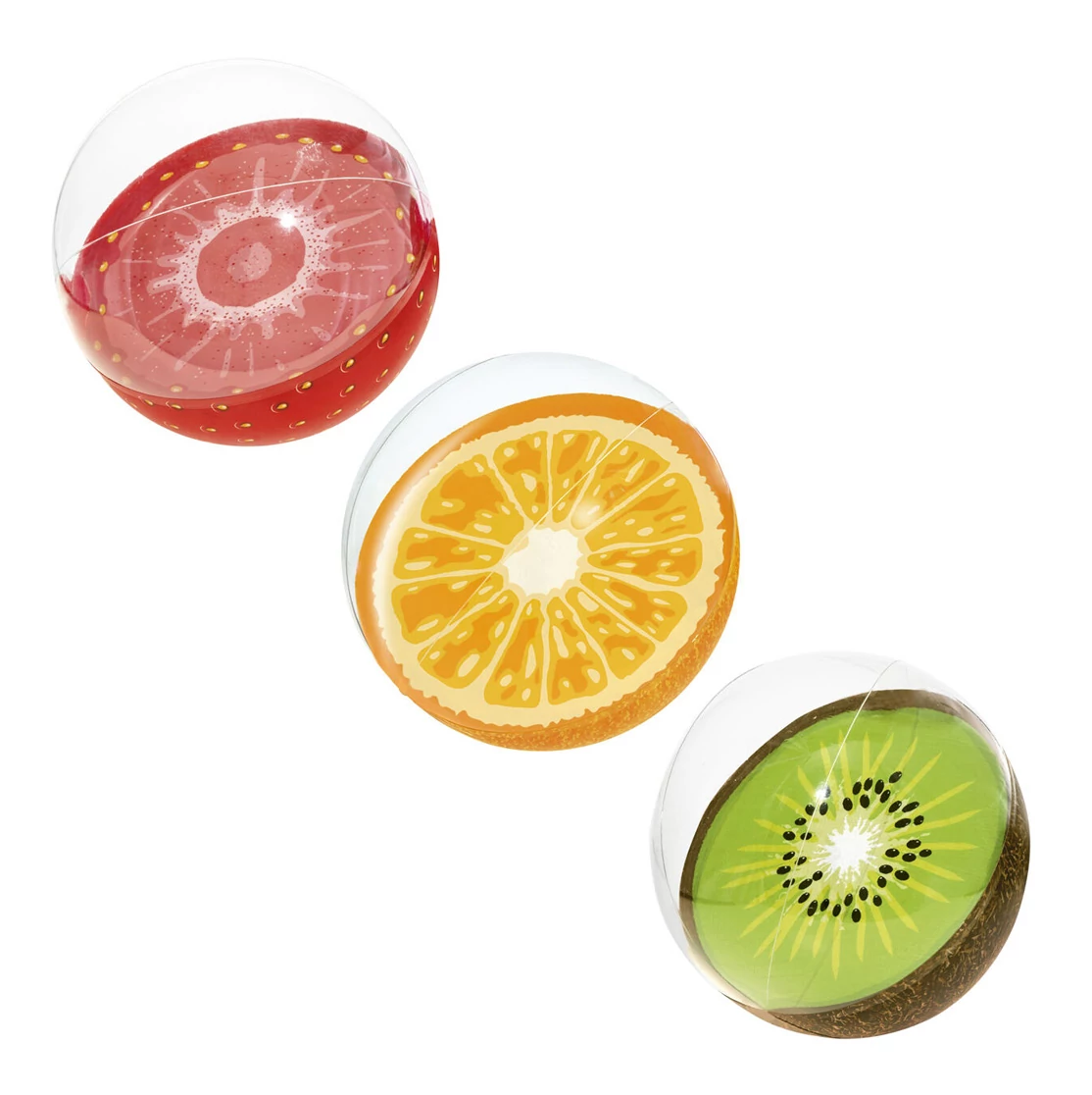 A labdák egyik fele átlátszó, így belátható a belsejük, ami egy félbevágott gyümölcsöt jelenít meg. Ez az átlátszó rész lehetővé teszi, hogy lássuk a labda belső részét, ami még tovább fokozza a gyümölcs illúzióját. Amikor a labda a napfényben ragyog, az átlátszó részek még inkább kiemelik a belső rész színeit és mintázatát, így egy igazán vonzó és szemet gyönyörködtető látványt nyújtva.