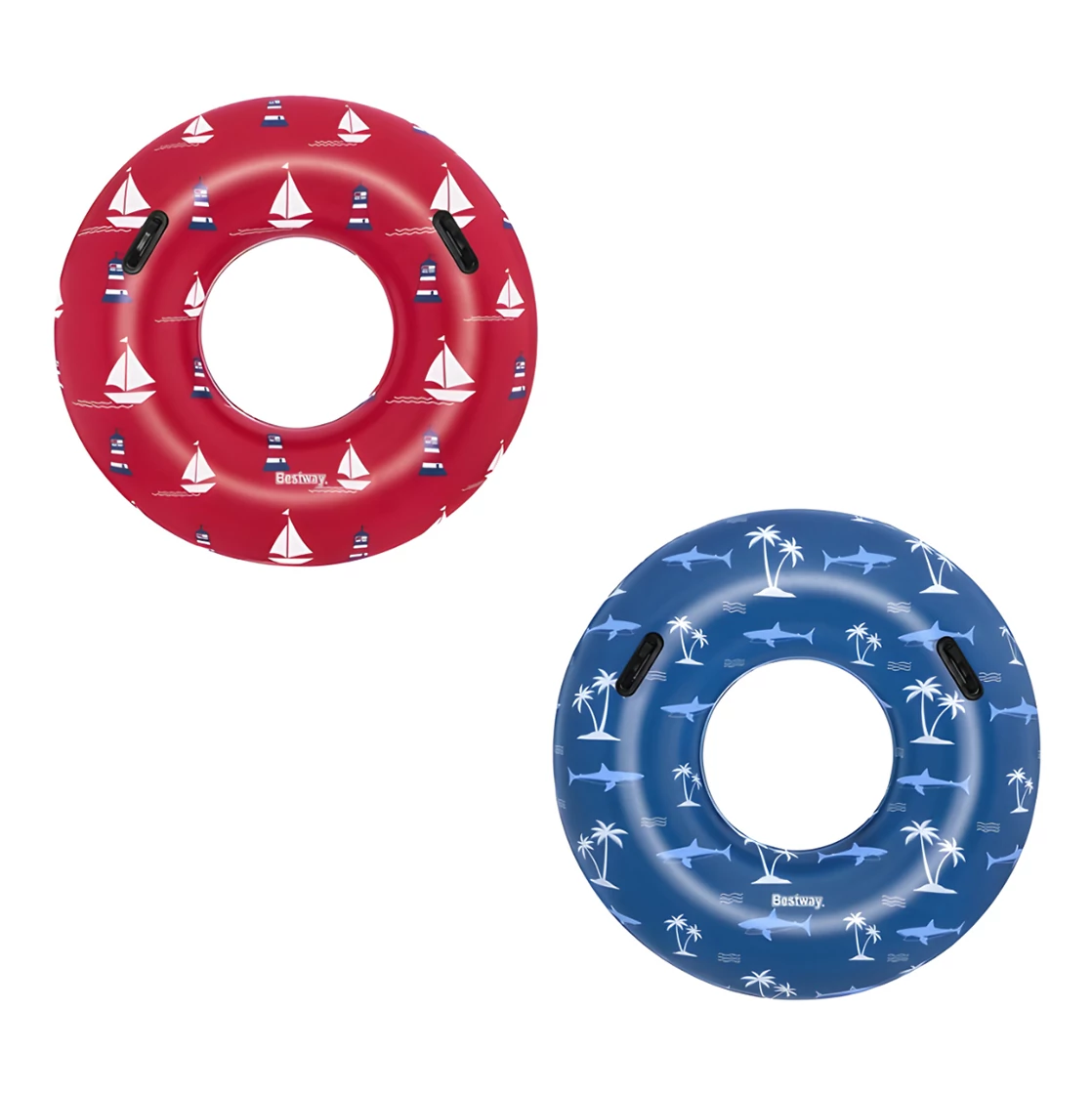 A 119 cm-es úszógumi két változatban érhető el, amelyek közül mindkettő garantálja az izgalmas és biztonságos úszóélményt a vízen.