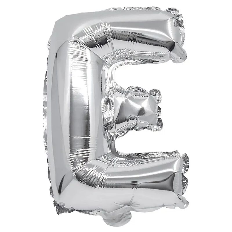 Betű formájú fólia lufi ezüst színben – E betű 32cm