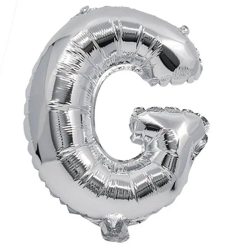 - Ezüst színű fólia lufi „G” betű formában