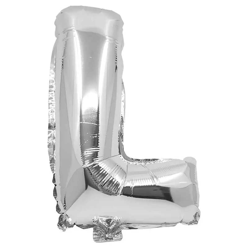 Betű formájú fólia lufi ezüst színben – L betű 32cm