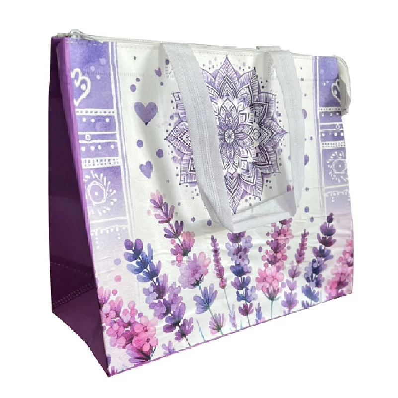 Bevásárlótáska cipzásros közepes Levendulás 35x30x15cm