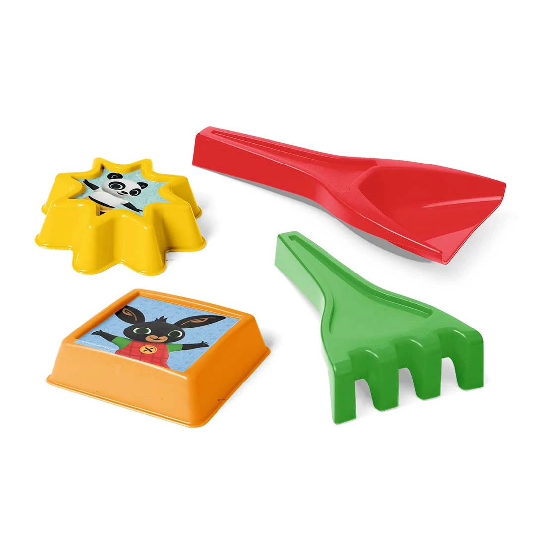 - 4 darabos szett (lapát, gereblye, 2 db homokozó forma)