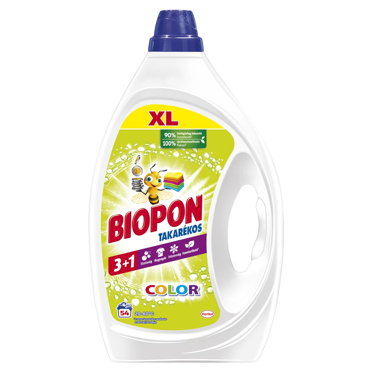 A Biopon Takarékos Color 90% biológiailag lebomló összetevőkkel* megéri az árát, segítségével ruhái makulátlanul tiszták, ragyogóan szépek és frissek maradnak.