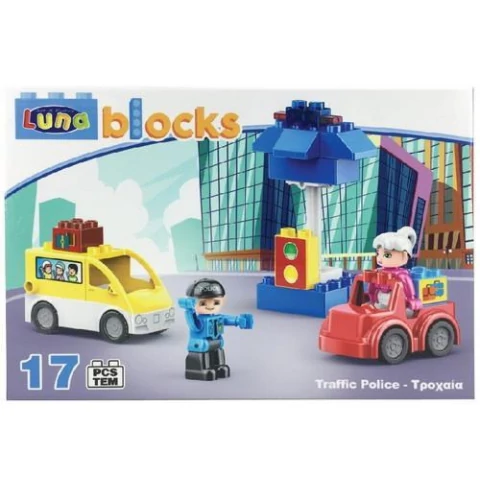 A forgalomirányítás nem egyszerű dolog, ám ennek a remek szettnek a segítségével a gyerekek biztosan megbirkóznak majd vele. Az építőjáték készletben egy rendőr található, aki egy lámpás kereszteződésnél irányítja a forgalmat. A lámpát a dobozban található építőkockákból kell majd összerakni a gyerekeknek. Ezeken kívül természetesen még két autó is található a szettben, egy személygépkocsi és egy furgon, melyekhez egy újabb figura tartozik. A szettben nagy méretű építőelemek találhatóak, melyek még a kisebb gyermekek számára is remekül kézre állnak. A Luna Blocks építőjátékok kompatibilisek egymással, így az egyes szettek akár tetszés szerint össze is építhetőek.
