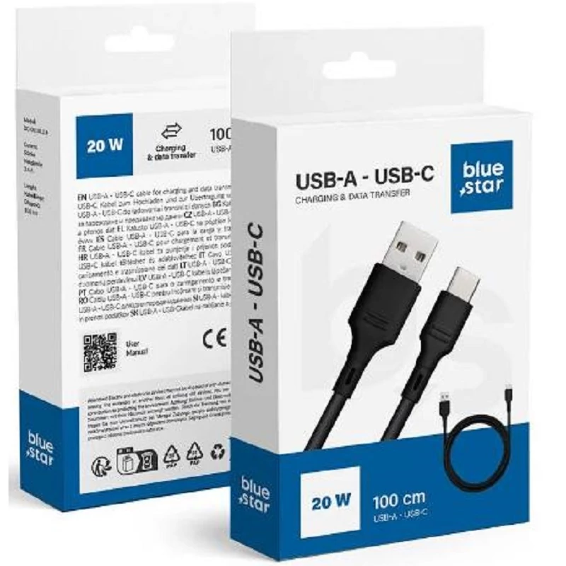 Bluestar Type-C kábel 3A, 1m, fekete, DC-001AC3.0