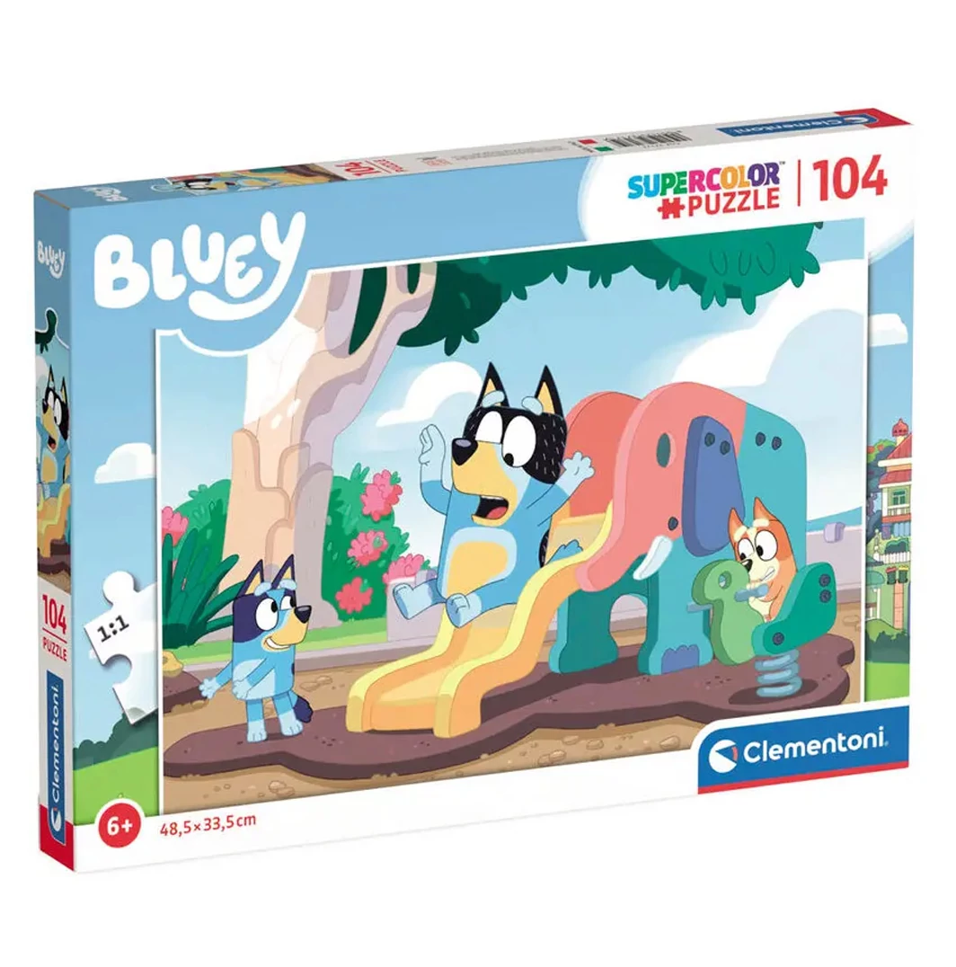 Bluey kutya csúszdázik 104 db-os Supercolor puzzle - Clementoni