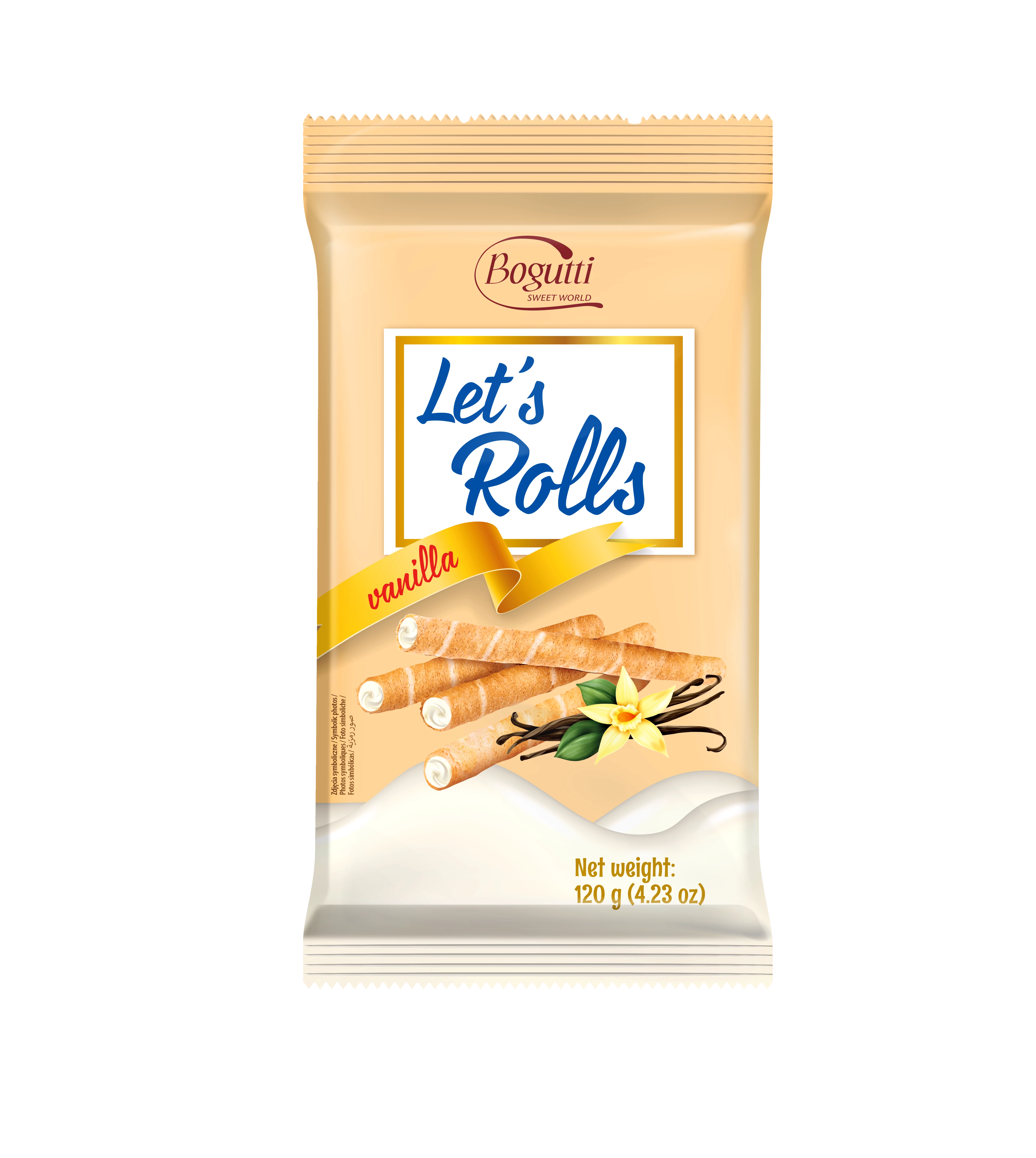 Bogutti Lets Rolls vanília ízű krémmel töltött ostyarúd 120g