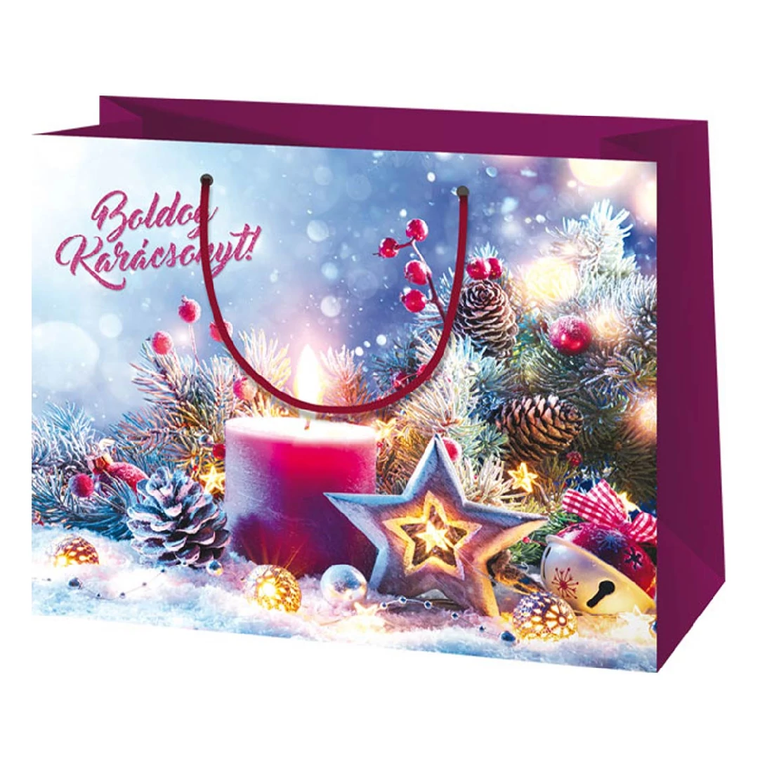 Boldog Karácsonyt! feliratos nagy méretű exkluzív ajándéktáska 27x14x33cm