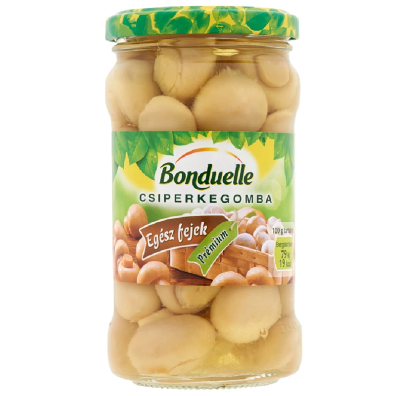 Csiperkegomba fejek natúr lében. Természetes ízvilága lehetővé teszi széleskörű felhasználását.