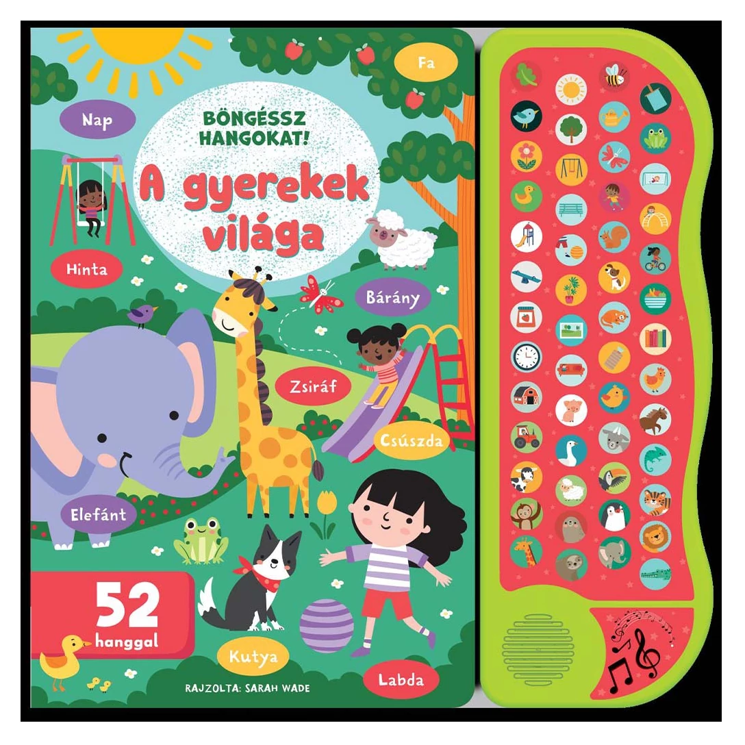 A Böngéssz hangokat! – A gyerekek világa egy különleges, interaktív hangos böngészőkönyv, amely játékos formában vezeti be a legkisebbeket a mindennapok ismerős világába. A vidám, színes illusztrációk és a könnyen kezelhető hangmodul segítségével a gyerekek nemcsak felfedezhetik a képeken látható tárgyakat, állatokat és játszótéri elemeket, hanem egyetlen gombnyomással meg is hallgathatják azok nevét vagy hangját.