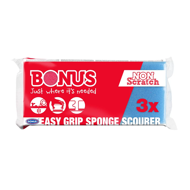 A három darabos kiszerelésű Bonus Formázott mosogatószivaccsal erős, de mégis kíméletes súrolóhatás érhető el mosogatás közben vagy bármely más háztartási felület tisztítása során. A karcmentes dörzsiréteg nem sérti fel az érzékeny felületeket, így lehetővé teszi mindenféle felület tisztítását. Használat közben a szivacs oldalain elhelyezett vájatok kényelmes fogást biztosítanak.