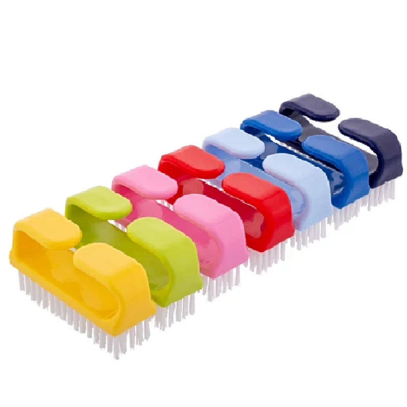 Markolattal ellátott műanyag körömkefe, műanyag szálakkal.