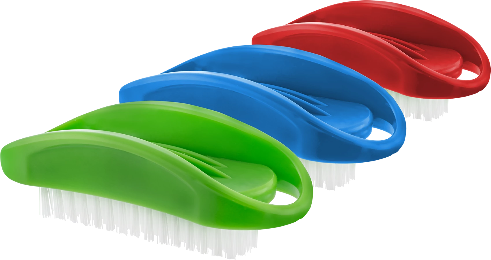 Klasszikus egyoldalú műanyag körömkefe, műanyag szálakkal.