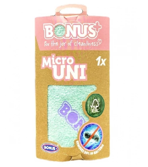 A Bonus MicroUNI kendő minden felületen hatékony, mert nem karcol, nem hagy nyomot, magába szívja és bezárja a zsíros, olajos szennyeződéseket és a port.
