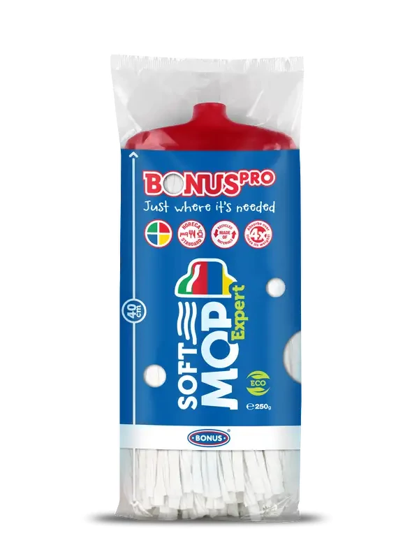 Végre egy ipari felmosófej, mely megfelelő méretű a professzionális takarításhoz. A BONUSPRO SoftMOP Expert tökéletesen alkalmas hatalmas területek padlófelületeinek tisztán tartásához. Nevéhez hűen kifejezetten ipari felhasználásra terveztük, a HoReCa szegmens követelményeinek megfelelően.