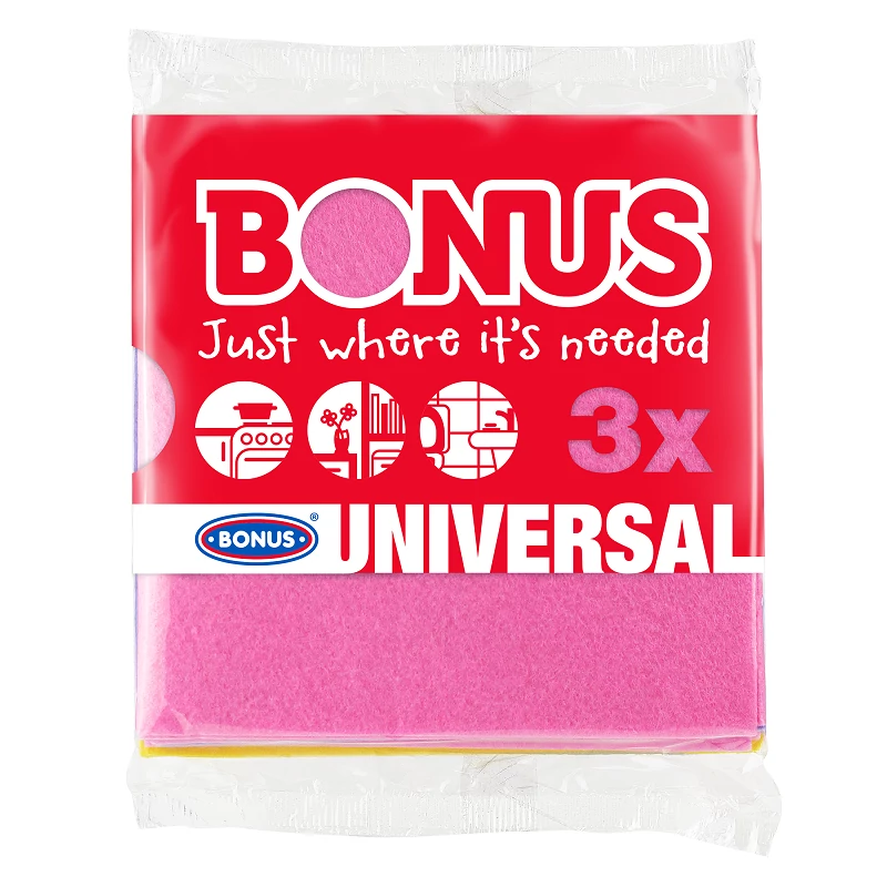 A Bonus Általános törlőkendők segítenek, hogy ne tévesszük össze a felhasználás célját és helyét, legyen szó akár a konyháról, a fürdőről, vagy a mellékhelyiségről.