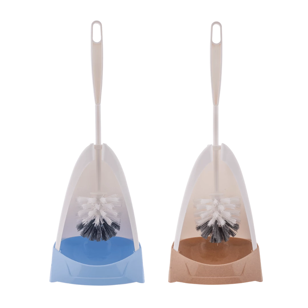 Klasszikus műanyag WC kefe műanyag szálakkal és WC kefe tartóval.