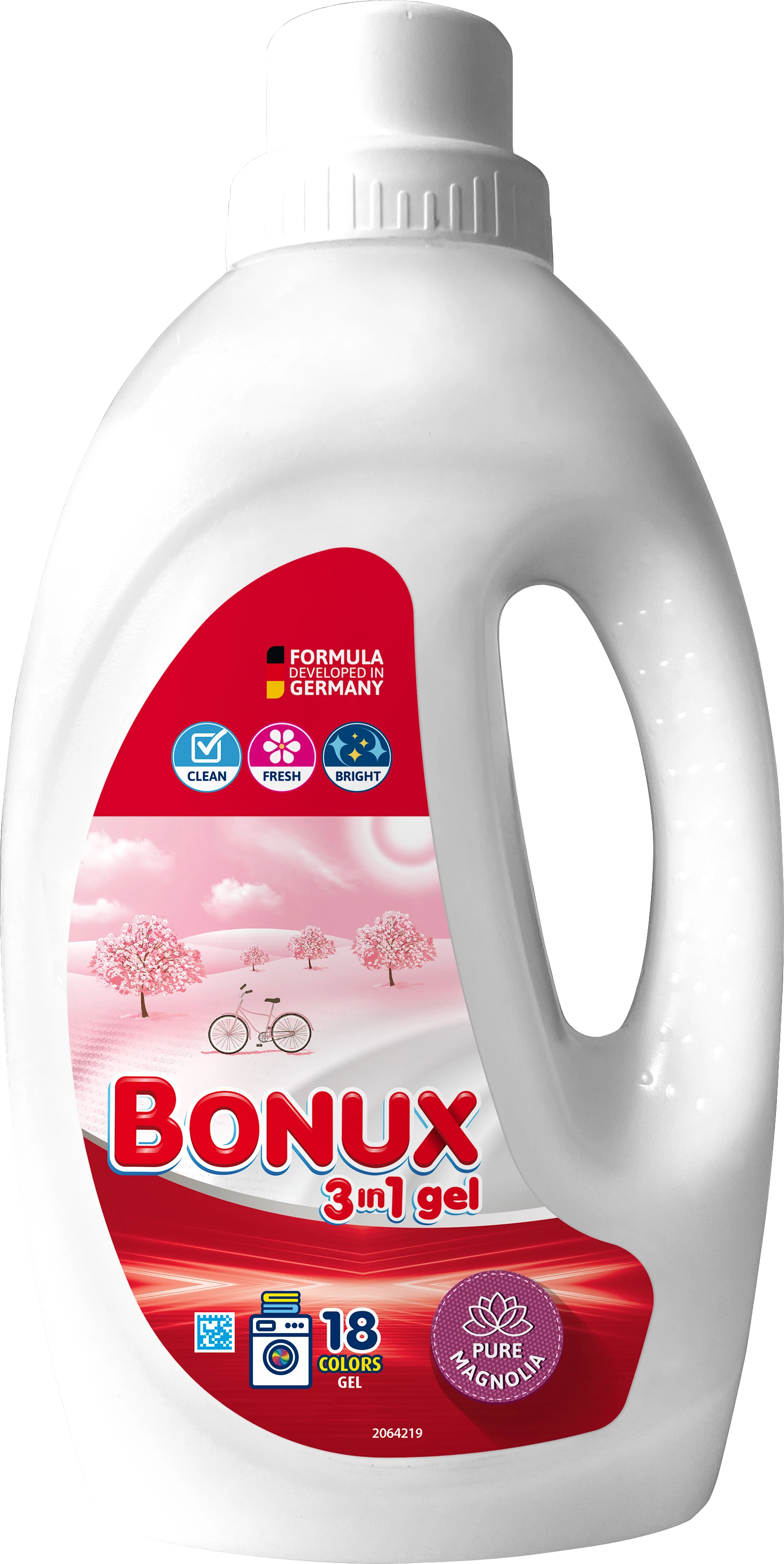 Folyékony mosószer Bonux 3in1 Color Pure Magnolia egyedi friss illatával színes ruhaneműkhöz alkalmas. Kiváló mosási teljesítményt nyújt, ugyanakkor puhítja a ruhaneműt, és hosszantartó illatba burkolja, akárcsak az öblítő. Ezzel energiát, időt és pénzt takaríthat meg. Friss illat Mossa, puhítja és illatosítja a ruhaneműt. Színes ruhákhoz alkalmas. Ez a mosógél kifejezetten színes textíliák ápolására lett kifejlesztve, megakadályozza a színfakulást, tisztít, ápolja a szálakat és friss illatot ad a ruhaneműnek.