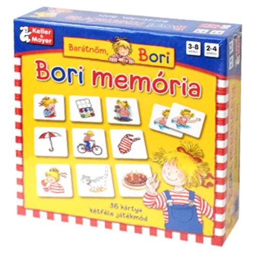 Bori a szőke hajú, csíkos pulcsis kislány már sok kisgyereknek ismerős lehet, hiszen megannyi mesekönyvben találkozhattak már vele, azonban most egy remek játék keretein belül csatlakozhatnak hozzá. Bori soha nem unatkozik, mindig elfoglalja magát. Rajzol, bringázik vagy éppen kiszalad a kertbe virágot szedni. Ebből a vidám memóriajátékból kiderül, hogy mivel foglalkozik legszívesebben. A gyerekek feladata lesz megkeresni a párokat és a hozzájuk tartozó játékokat. A Bori memória többféle nehézségi fokon játszható. Fejleszti az asszociációs és a megfigyelőkészséget, a memóriát és a finom-motorikát.