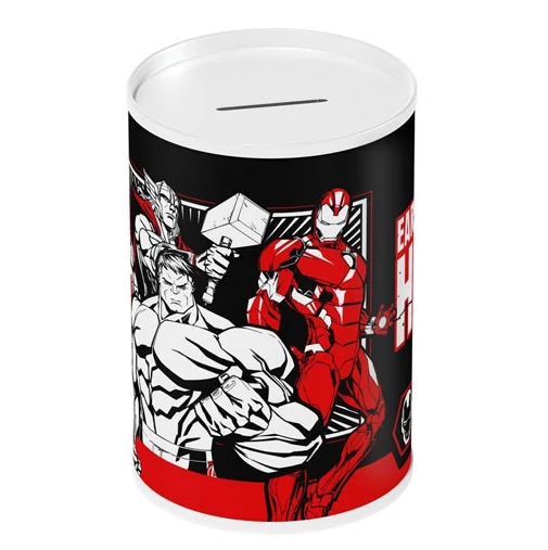 A Bosszúállók a legnépszerűbb és legerősebb szuperhősöket magába foglaló csapat, így biztos, hogy minden kis srác örömmel talál helyet a szobájában ennek a vagány perselynek, amin Vasember, Thor és Hulk is látható. A klasszikus hengeres fém persely remek dekorációja lehet a gyerekszoba asztalának, de jól mutat a polcokon is. A persely alja nem nyitható, konzervnyitó segítségével lehet belőle kiszedni az összegyűlt fém és papírpénzeket.