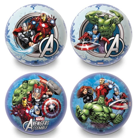 Amerika Kapitány, Vasember, Thor és Hulk is megjelenik Bosszúállók mintázattal díszített gumilabdádon amely 14 cm-es átmérőjének köszönhetően kiválóan alkalmas a legtöbb labdajáték űzésére.