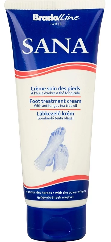 A növényi anyagokban gazdag Sana lábkezelő krém a napi lábápolás mellett hatékonyan védi a bőrt a gombás fertőzésektől. A természet egyik legeredményesebb gombaölő hatóanyagának, a teafaolajnak és az egyéb aktív összetevőnek a kombinációja nemcsak védi a bőrt, de segít megszüntetni a már kialakult bőrgombát. Akár kúraszerűen, akár megelőző jelleggel rendszeresen használható mellékhatások nélkül. Nem zsíros, könnyen felszívódik.