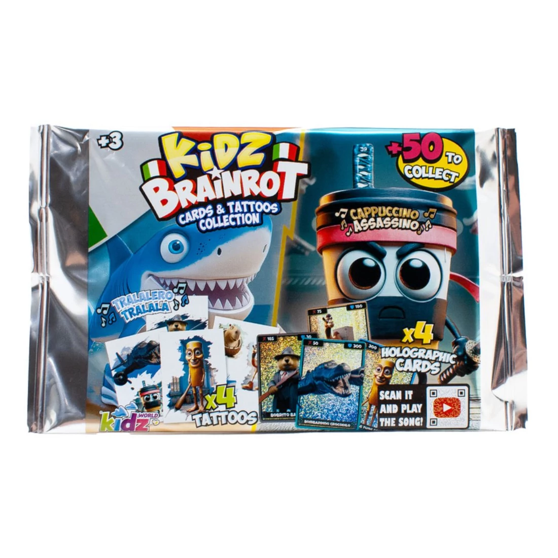 A Brainrot holografikus kártyák és tetoválások csomag igazi meglepetés a gyűjtők és a rajongók számára. A csomagban több mint 50 különböző, izgalmas kártyát lehet összegyűjteni, köztük holografikus darabokat is, amelyek különleges fényhatással ragyognak. A kártyák mellett vicces és menő tetoválásokat is tartalmaz, amelyekkel a gyerekek még jobban kifejezhetik kreativitásukat és rajongásukat. A csomag minden darabja egyedi élményt kínál, hiszen a kártyák között megtalálhatók kedvenc karakterek és különleges effektekkel díszített változatok is. A kártyák nemcsak gyűjthetők, hanem interaktív módon is életre kelthetők: egyes darabokat beszkennelve zenék és dalok is előhívhatók, ezzel téve még szórakoztatóbbá a játékélményt. A termék ideális választás a 3 évesnél idősebb gyerekeknek, akik szeretnek gyűjtögetni, játszani és mindig új meglepetéseket felfedezni.