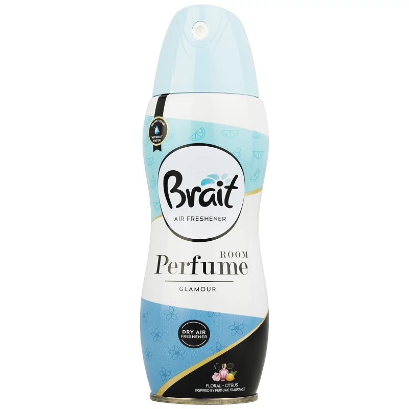 Az új Brait Home parfüm Parfüm Glamour frissítő a Dry Mist formulával -nem tartalmaz vizet. Hatékonyan felfrissíti a helyiséget nedves köd permetezése nélkül. A száraz spray formula nem hagy nyomot a bútorokon, ruhákon vagy tárgyakon. Az illat gyorsan átterjed a levegőn, és mindent frissé, illatossá tesz.