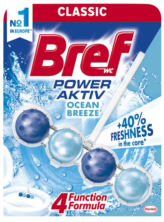A Bref Power Aktiv Ocean, egy rendkívül egyszerű és kényelmes módszer, a toalett frissessége és tisztasága megőrzése érdekében az első öblítéstől az utolsóig. A 4 Funkciós Formulájával ez a WC frissítő kitűnő választás az Ön fürdőszobájának : Tiszítóhab, Vízkőoldás, Szennyeződések elleni védelem és Extra frissesség.
