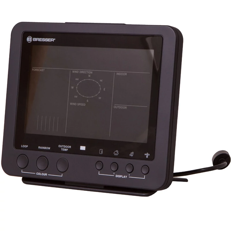 The new Bresser Weather Center 5-in-1 COLOR combines a compact design with an extensive information service in a very unique way. The small-sized multifunctional outdoor sensor is very place-saving and can be placed almost anywhere. A pipe clamp and screws to mount it to a pole (tube diameter about 25-33mm) as well as a stand are already included!