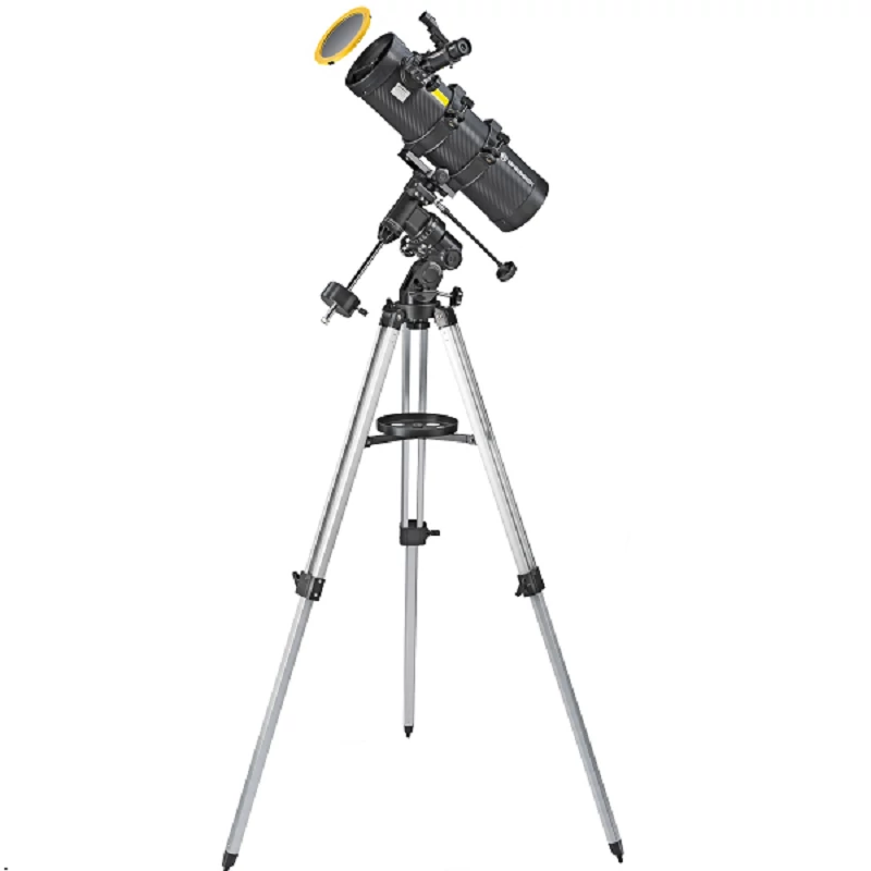 A great serious beginner's scope with reasonable aperture mirror and a long focal length which allows the observation of many celestial targets. Thanks to the catadioptic system (integrated Barlow lens) the length of the tube is kept to a minimum, which aids transportation and storage. The Bresser Spica comes on an equatorial mount with aluminium tripod, allowing accurate tracking of objects at high powers, using integrated gears and manual slow motion controls (the mount can also be motorised with the addition of a Right Ascension motor kit at a later date). All Newtonian Telescopes have a drawtube focuser on the side of their tube, this offers an adjustable viewing angle, which can be set to the user's liking by revolving the tube in the support rings - offering comfort while observing celestial bodies. Explore the planets within our solar system and discover the brighter deep sky objects.