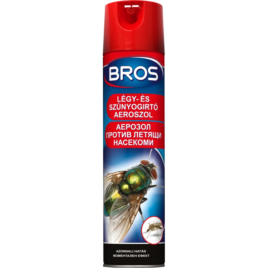 BROS légy- és szúnyogirtó aeroszol 400 ml permet formájú termék repülő rovarok számának beltéri csökkentésére.