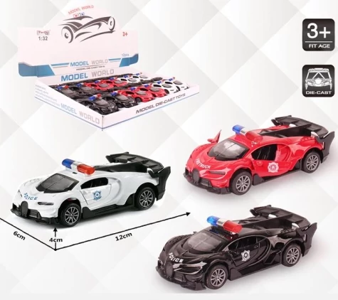 Bugatti rendőrségi hátrahúzható fém autómodell több változatban 1/32