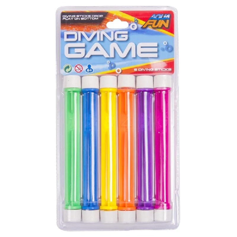 Merülj a víz alá, hogy ne csak a levegőn játszhass barátaiddal! A Búvár játék színes pálcáinak vége nehezékkel van ellátva, hogy a medence fenekére süllyedve várjon a kincskereső búvárokra. Bukjatok hát a víz alá, és hozzátok fel egyenként a felszínre a játékokat. A Búvár játék csomagja 6 darab pálcát tartalmaz. A játékot 6 éves kortól ajánljuk.