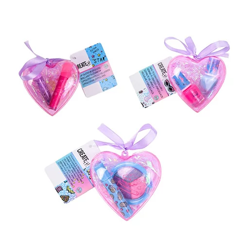 A Create it! sminkelős szettek a legjobb minőségűek, amelyek mosolyt, színt, életet hoznak a kicsik arcára. Ezek a kis játékok még izgalmasabbak a kislányok számára, mikor meglátják, hogy szívecskés dobozban vannak eltárolva. Ezek az aranyos make-up szettek kifejezetten a gyerekek számára készültek, teljesen biztonságosak és a nap végén könnyen eltávolíthatóak. A szett több változata is beszerezhető, tetszés szerint lehet választani.
