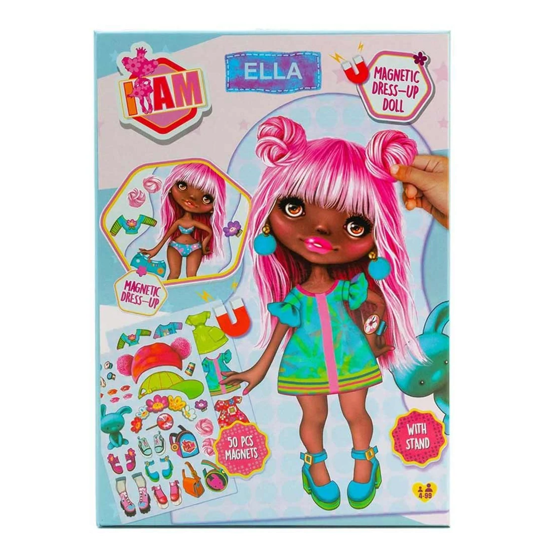 Fedezd fel a Canenco I Am mágneses öltöztethető baba - Ella készletet, amelyben Ella, a stílusos baba várja, hogy a gyermeked divattervezővé váljon! A készlet két ív mágneses matricával teszi lehetővé, hogy a gyermeked könnyedén próbálhassa fel Ella különböző ruháit és kiegészítőit, megalkotva így négy egyedi öltözék kombinációt.