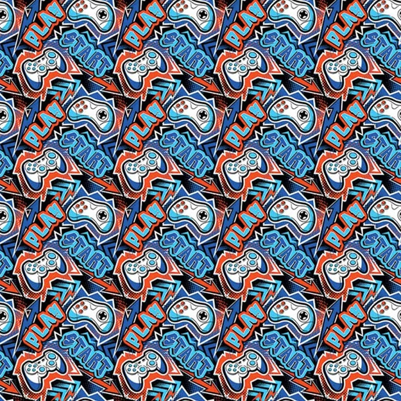 Indulhat a játék! A Gamer Kontroller mintás csomagolópapír igazi telitalálat minden videojáték-rajongó számára – legyen szó kisfiúról, kamaszról vagy akár egy felnőtt gamer barátról. A 100x70 cm-es íven vagány, dinamikus dizájn jelenik meg: kontroller ikonok, „START” és „PLAY” feliratok, élénk piros, kék és fekete színekben, képregényszerű stílusban.