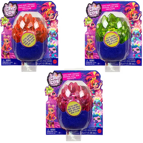 A Cave Club az őskor első baráti társasága, ami most a gyerekszobába is mókás pillanatokat hozhat el. Az ősi karakterekkel, vicces torzonborz frizurákkal és barátságos diónkkal könnyű órákon át új és új történeteket eljátszani. Minden tojás és kristály egy meglepetés lényt rejt kiegészítőkkel és olyan extrákkal, mint a slime vagy a formázható homok. A meglepetéscsomagban a kilenc különböző dinófigura egyike található apró kiegészítőkkel.
