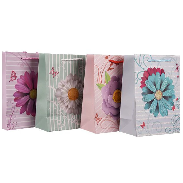 Dobja fel ajándéka csomagolását ezzel a lenyűgöző ajándéktáslával! Csíkos és virágos díszítésével ez az öko-barát táska bármilyen alkalomra tökéletes választás.