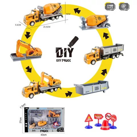 City Truck Átalakítható építőipari teherautó jelzőtáblákkal 1/48
