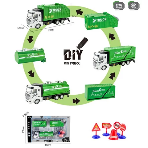 City Truck Átalakítható szemétszállító teherautó jelzőtáblákkal 1/48