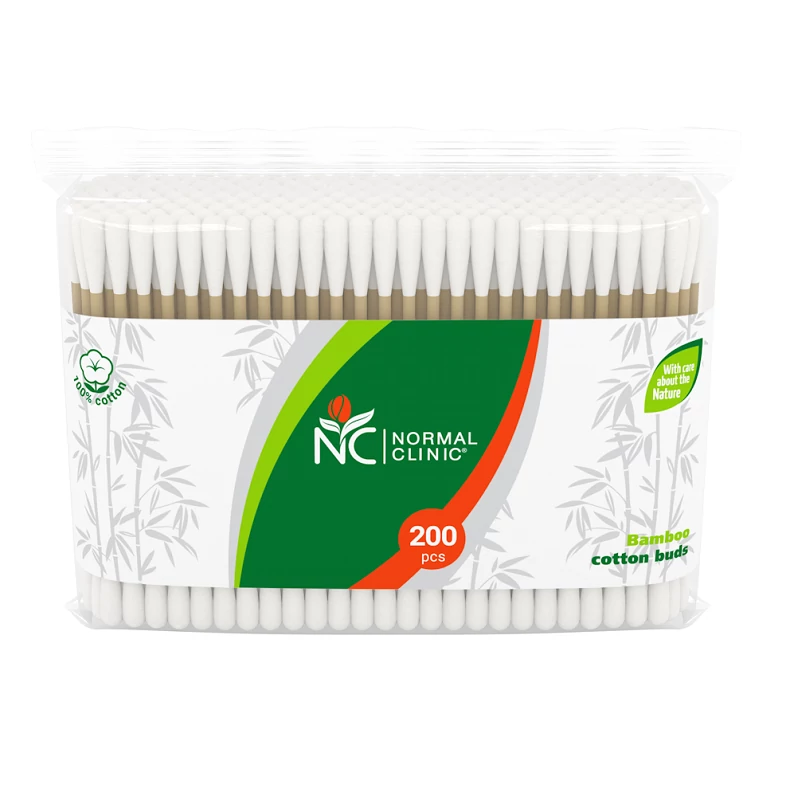 Normal clinic bambusz fültisztító pálcika visszazárható műanyag dobozban felnőtt használatra kifejlesztve.