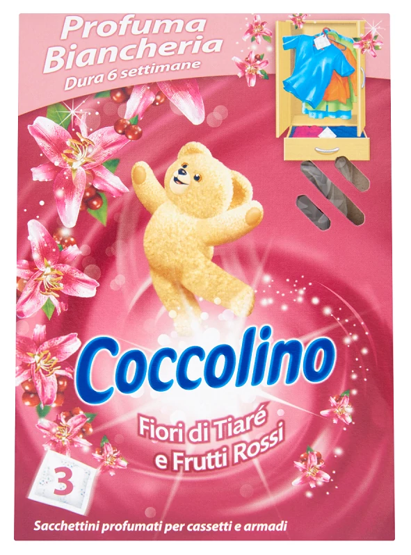 A Coccolino illatpárnácskái a bennük lévő illatgyöngyöknek köszönhetően hat héten át kellemes Coccolino-illatot árasztanak, s ezt természetesen átadják a ruháknak is.