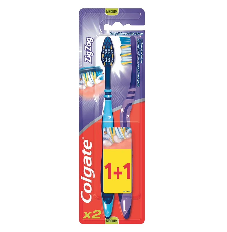A Colgate Zig-Zag fogkefe közepes puhaságú sörtéi mélyen tisztítják a fogközöket a nehezen elérhető helyeken is. Cikkcakkos kialakításának köszönhetően alaposan tisztítanak, gyengéden távolítják el a szennyeződéseket és így varázsolják fehérebbé a fogakat. Az 1+1 csomagban most kettő fogkefét is kap egy áráért, így könnyedén gondoskodhat a következő saját fogkeféjéről is, hisz érdemes sűrűn, de legfeljebb háromhavonta cserélni. A dupla csomag segítségével egyszerre szerezheti be a párja, családtagja fogkeféjét is.