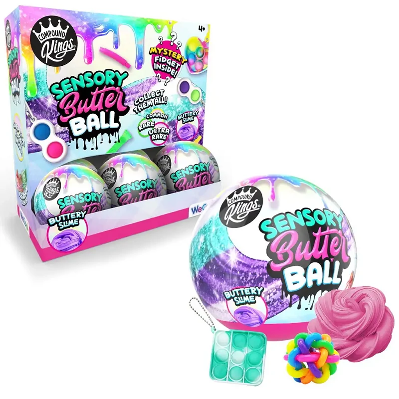 Engedd, hogy a gyerkőc átadja magát az érzékszervi játék varázsának a Compound Kings illatos vajslime meglepetéslabdával! Ez a különleges labda nem csak egy színes és puha vajslime-et rejt, hanem egy titokzatos stresszoldó játékot is – így a kibontása igazi izgalmas kaland lesz. A labda belsejében megbújó slime illata kellemesen gyümölcsös, állaga pedig selymes és lágy, ami garantáltan le fogja kötni a gyerekek figyelmét és nyugtató hatással bír.