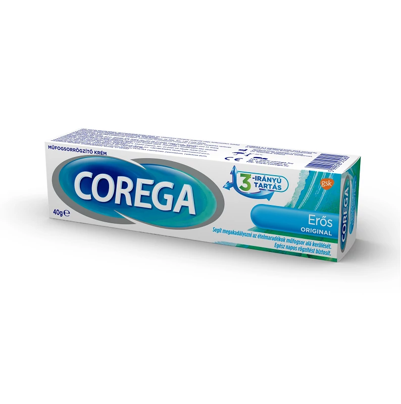 A Corega műfogsorrögzítő krém biztosítja a teljes vagy részleges műfogsor számára az erős, egész napos rögzítést. Nem kell műfogsorának megfelelő illeszkedése miatt aggódnia, szabadon élvezheti az étkezés örömeit, beszélhet és mosolyoghat gátlások és félelem nélkül. A műfogsort viselők legnagyobb félelme, hogy ételmaradék kerül a protézisük alá. A tökéletes rögzítés mellett ez a Corega rögzítőkrém fizikálisan zárja el az íny és a műfogsor felülete közötti rést. Ez fizikailag is megakadályozza, hogy az ételmaradékok beszoruljanak az íny és a műfogsor közé.